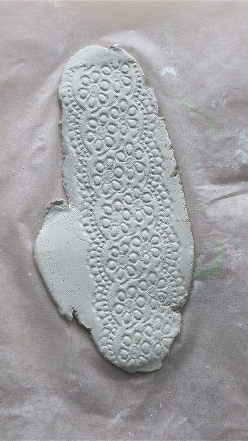 Create a beautiful design on your clay by rolling a piece of lace over it!