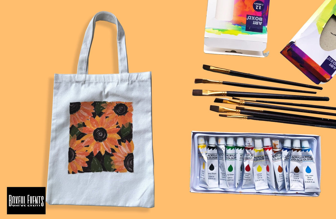 tote bag painting kit, DIY art kit, painting kit with tutorial, personalised tote bag, paint and sip at home, creative gift idea Australia, art and craft kit, team building activity, eco tote painting